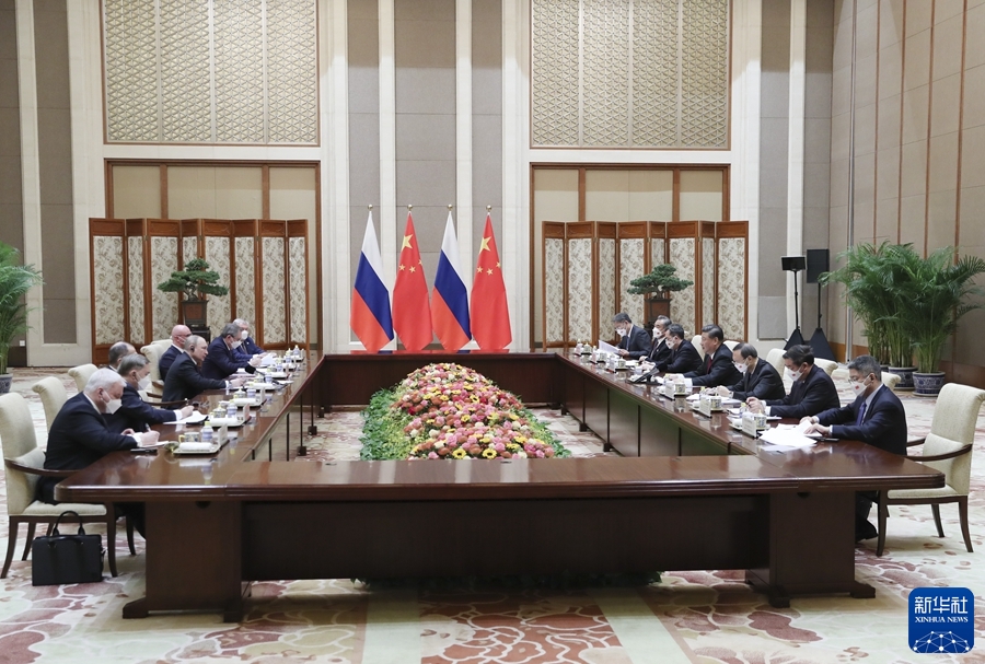 国家主席习近平2月4日下午在北京钓鱼台国宾馆同俄罗斯总统普京举行会谈。两国元首在热烈友好的气氛中就中俄关系以及事关国际战略安全稳定的一系列重大问题深入充分交换了意见。