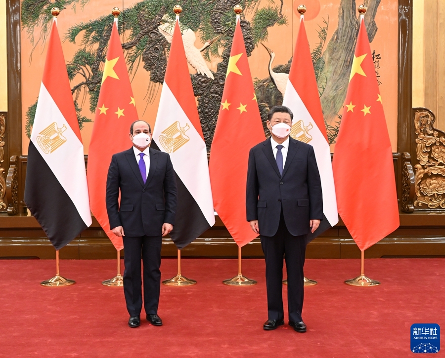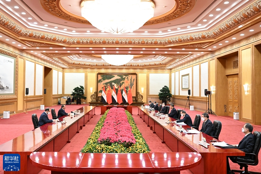 习近平指出,近年来中埃政治互信更加巩固,务实合作成果丰硕,团结抗疫亮点纷呈,中埃全面战略伙伴关系成为中国同阿拉伯、非洲、发展中国家团结合作、互利共赢的典范。当今世界正在经历百年未有之大变局,中埃两国在捍卫自身利益、追求共同发展、增进人民福祉、促进世界公平正义的事业中,理念相通,战略契合。双方应当携手努力,坚定朝着新时代构建中埃命运共同体的目标迈进。