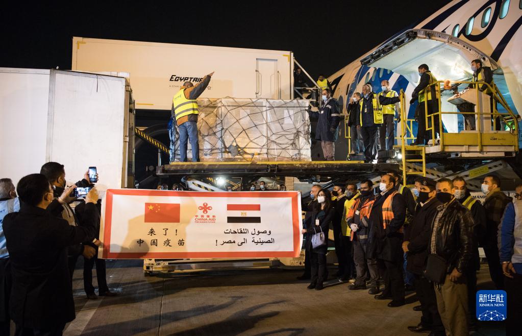2021年2月23日,中国援助埃及的首批新冠疫苗抵达开罗国际机场。新华社记者 邬惠我 摄