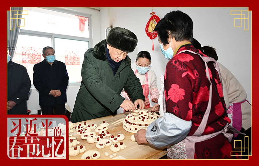 2022年1月26日,习近平总书记在临汾市霍州市师庄乡冯南垣村,同师红兵一家做年馍。