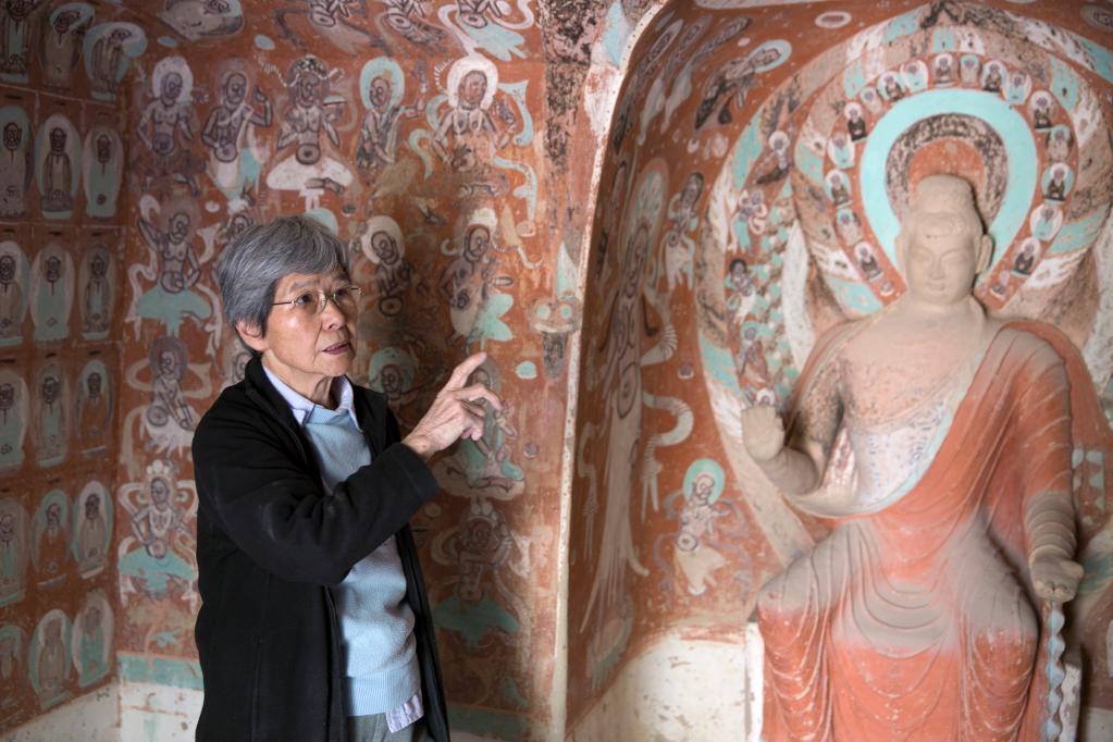 樊锦诗在敦煌莫高窟(2015年9月29日摄)。新华社发(孙志军 摄)