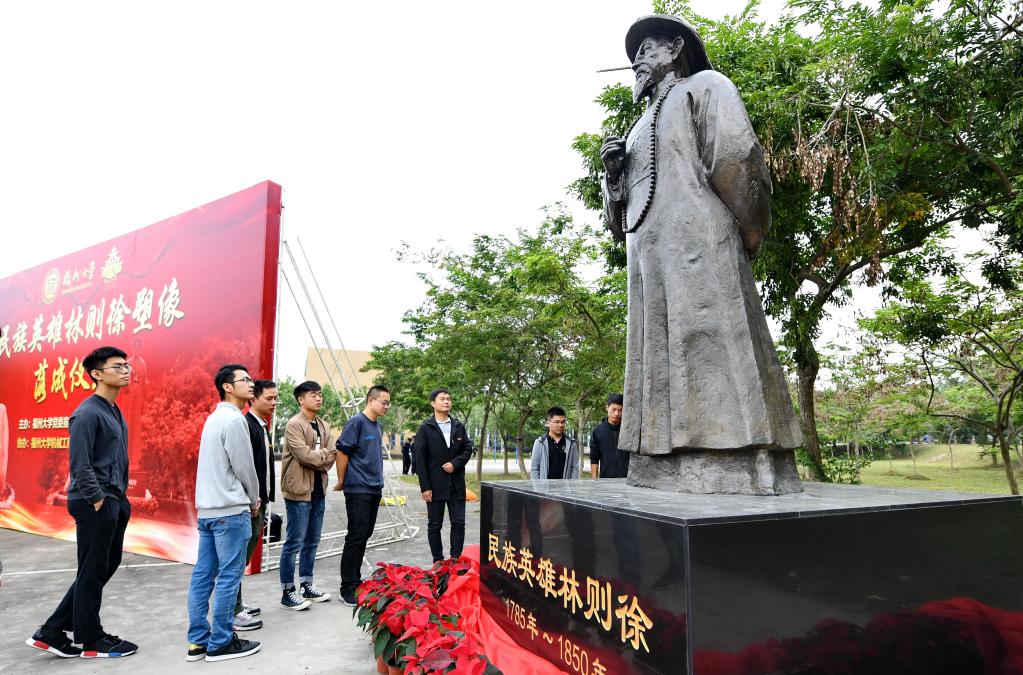 福州大学师生参观民族英雄林则徐塑像(2018年10月26日摄)。新华社记者 林善传 摄
