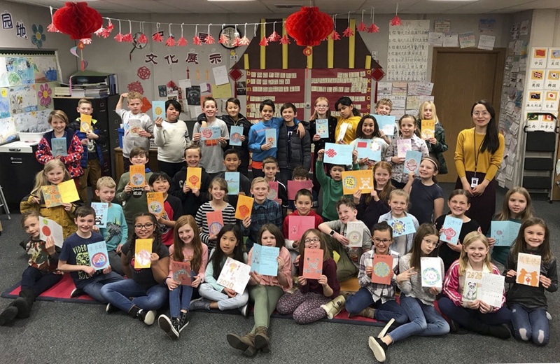 ↑2020年1月21日,美国犹他州卡斯卡德小学师生展示为习主席制作的新年贺卡。