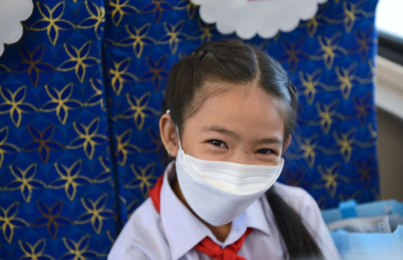 ↑2021年12月3日中老铁路全线开通运营当天,老挝中老友好农冰村小学学生乘坐从万象始发的“澜沧号”动车组列车。