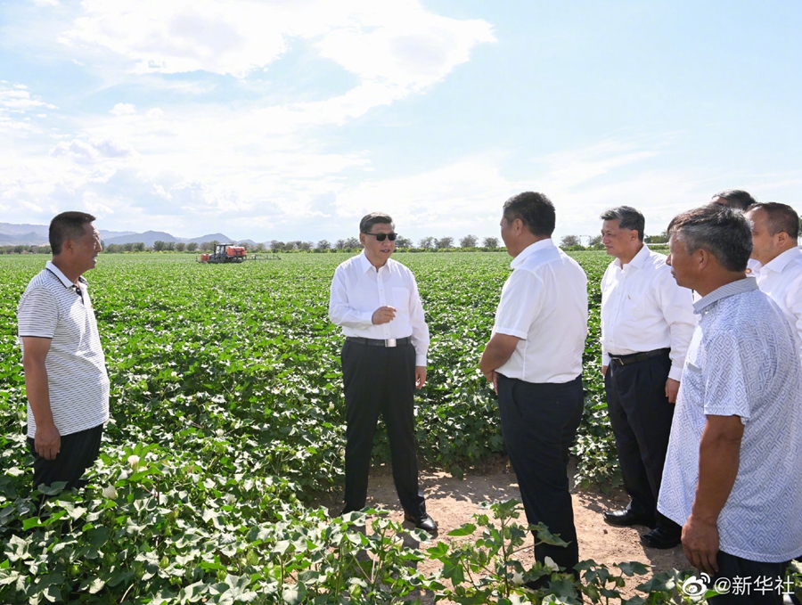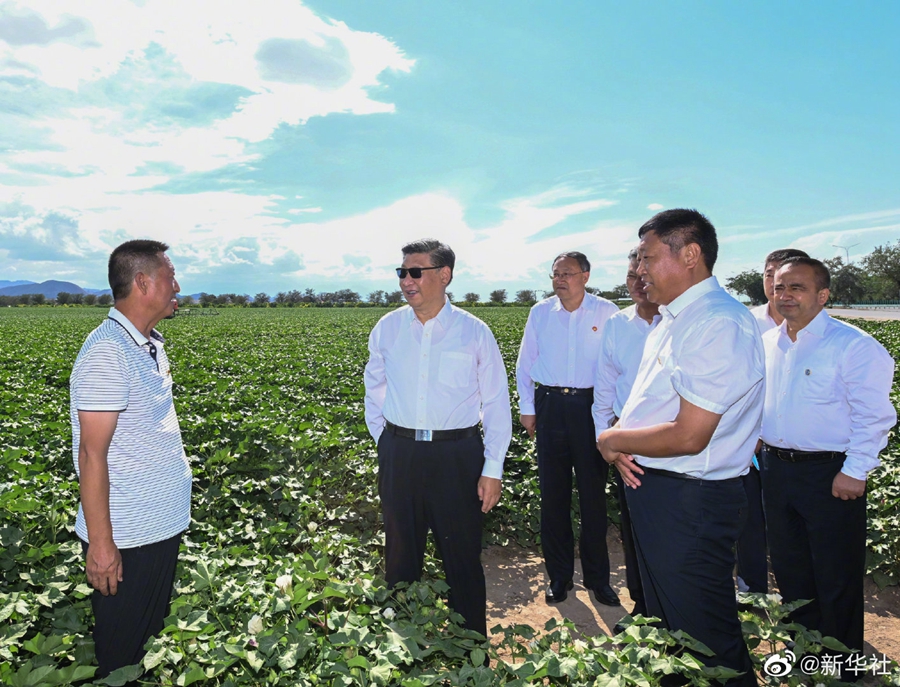 13日下午,习近平总书记来到新疆石河子市,先后考察了新疆兵团军垦博物馆、八师石河子市一四三团,了解兵团屯垦戍边历史,以及兵团加强基层组织建设、发展特色农业、促进兵地融合发展等情况。(文字记者:张晓松、朱基钗;摄影记者:李学仁、谢环驰、申宏、燕雁)