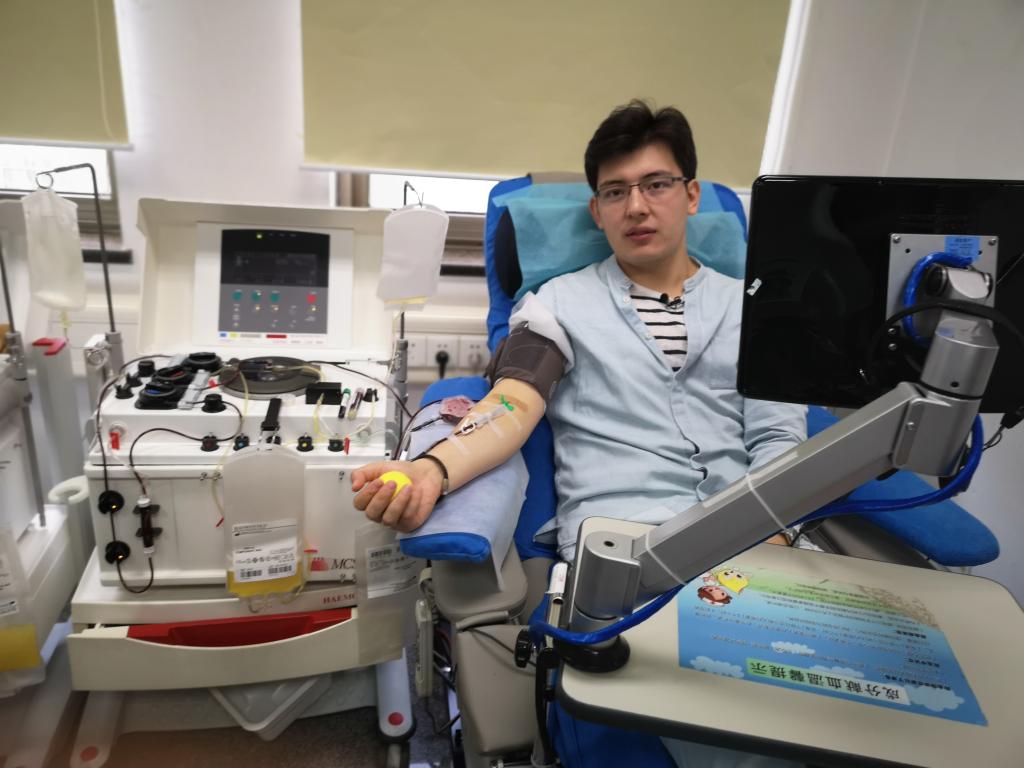 2018年5月22日,鲁斯兰在北京市红十字血液研究所献血。新华社发