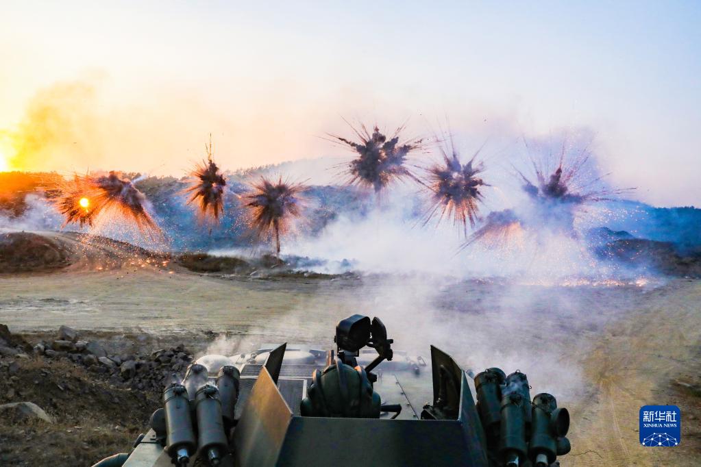 陆军第72集团军某旅组织某型轮式装甲输送车进行车载烟幕实弹射击训练(2021年1月4日摄)。新华社发(张毛 摄)