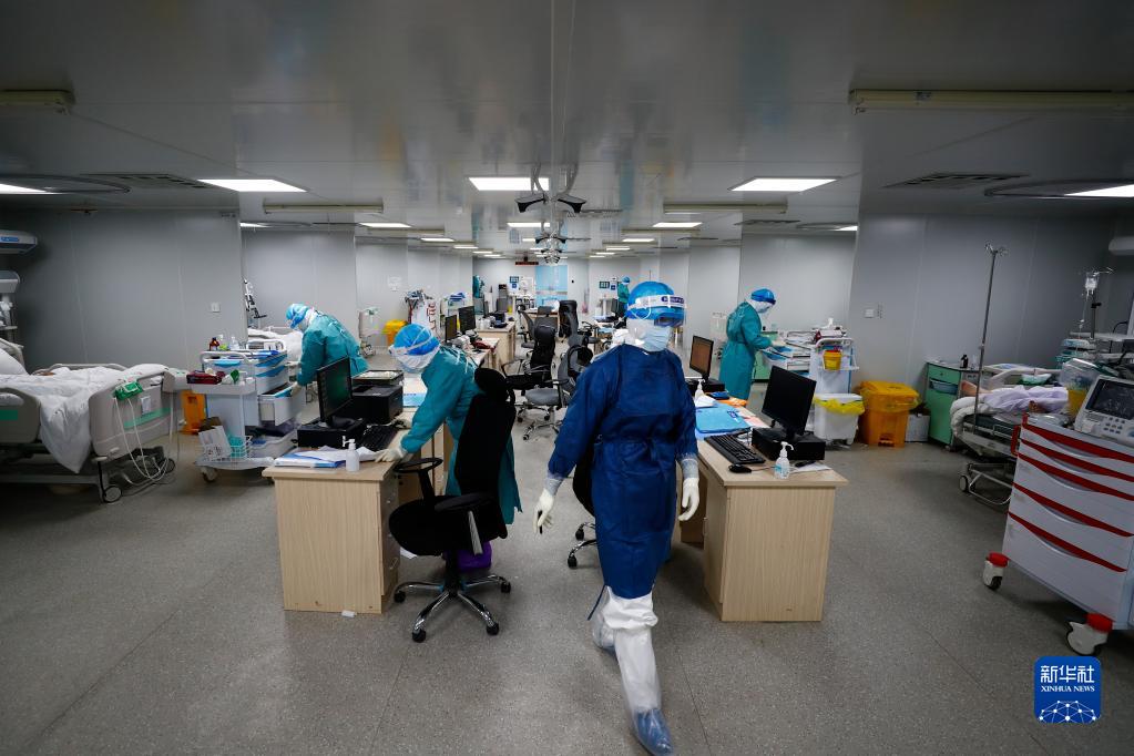 在武汉火神山医院,重症一科医护人员紧张忙碌(2020年2月24日摄)。新华社发(王皓宇 摄)