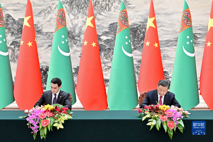会谈后,两国元首签署并发表《中华人民共和国和土库曼斯坦联合声明》,共同见证签署“一带一路”、绿色发展、数字经济、卫生、文化、体育、新闻媒体、天然气等领域合作文件。