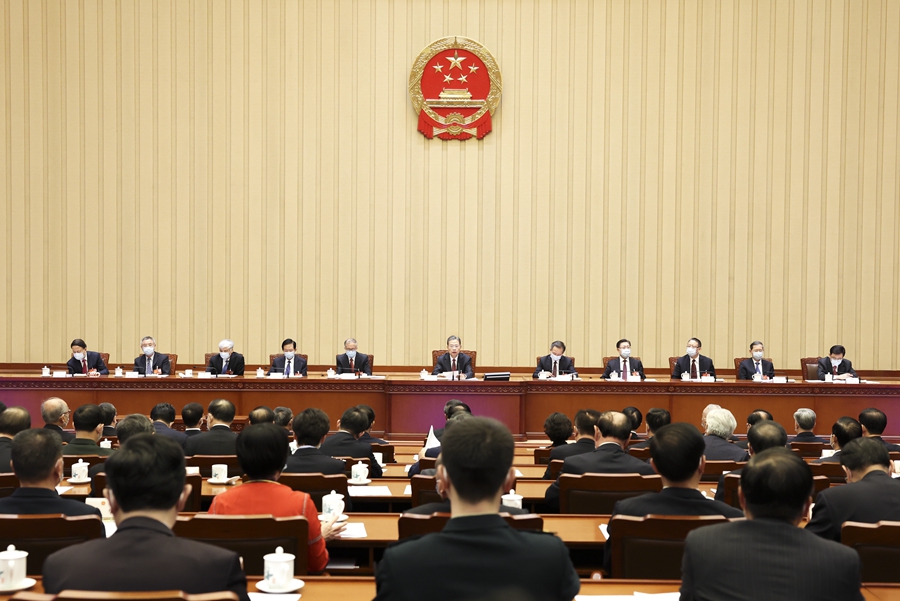 3月10日上午,十四届全国人大一次会议主席团在北京人民大会堂举行第五次会议。主席团常务主席赵乐际主持会议。新华社记者 庞兴雷 摄