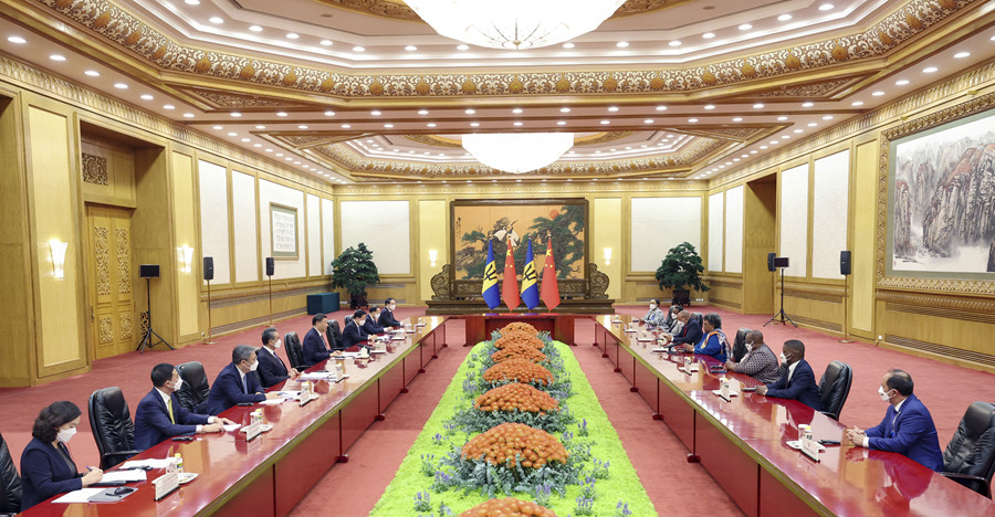 习近平指出,巴巴多斯是东加勒比地区最早同中国建交的国家,也是中国在这一地区的好朋友、好伙伴。中巴两国虽然远隔重洋,但志同道合、携手同行,双边关系不断深化发展。中国正在以高质量发展推进中国式现代化,这将为巴巴多斯发展和中巴合作带来新机遇,欢迎巴方搭乘中国发展“快车”,同中方构建更紧密中巴命运共同体。