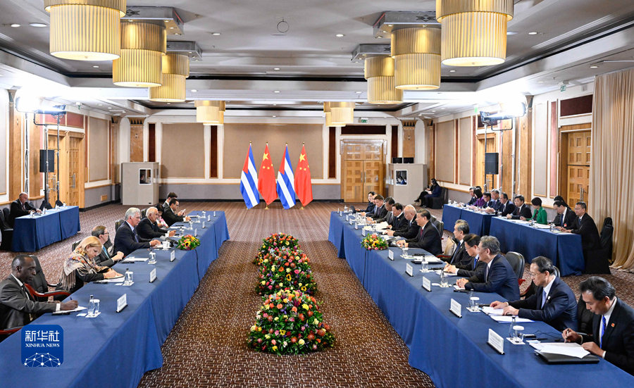 习近平强调,“77国集团和中国”是发展中国家重要合作平台。古巴作为今年“77国集团和中国”主席国,为加强发展中国家团结作出积极贡献。中方高度重视并支持古巴下个月成功主办“77国集团和中国”峰会,愿同古巴和其他77国集团成员一道,更好维护发展中国家的共同利益和发展权利。