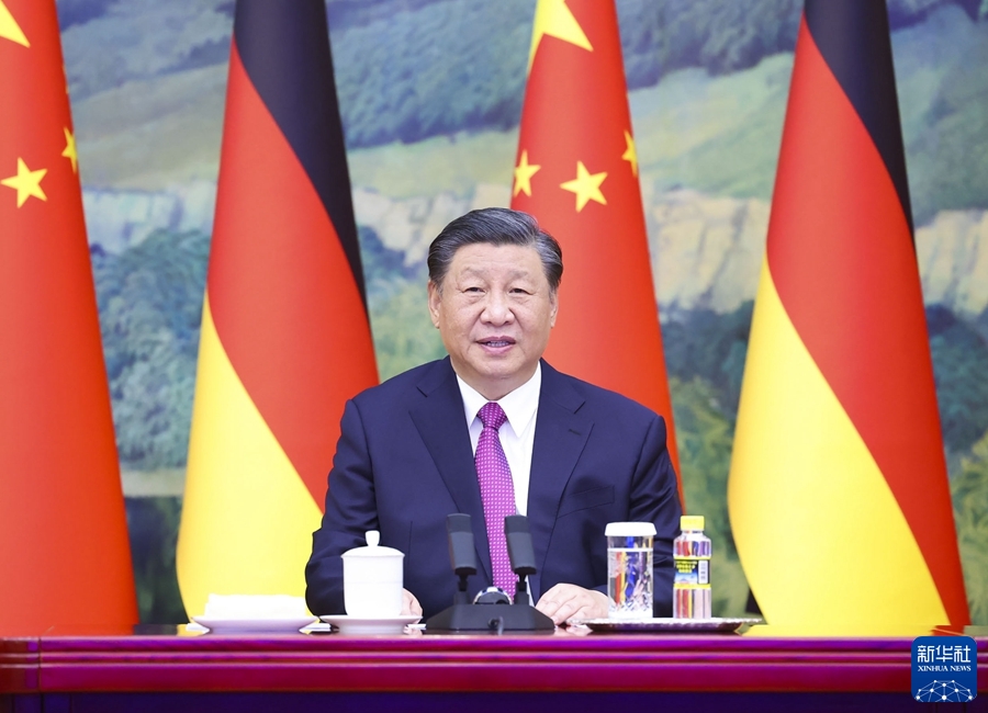 11月3日下午,国家主席习近平同德国总理朔尔茨举行视频会晤。新华社记者 黄敬文 摄