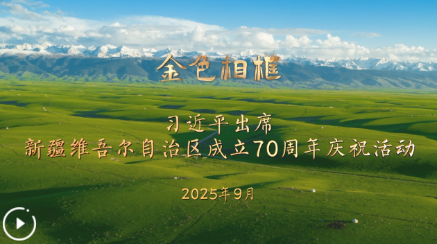 25日上午,新疆人民会堂,笑语欢声。会堂前广场,是两个巨大的红石榴景观造型。身着盛装的人群,从四面八方汇聚到这里,隆重庆祝自治区成立70周年。