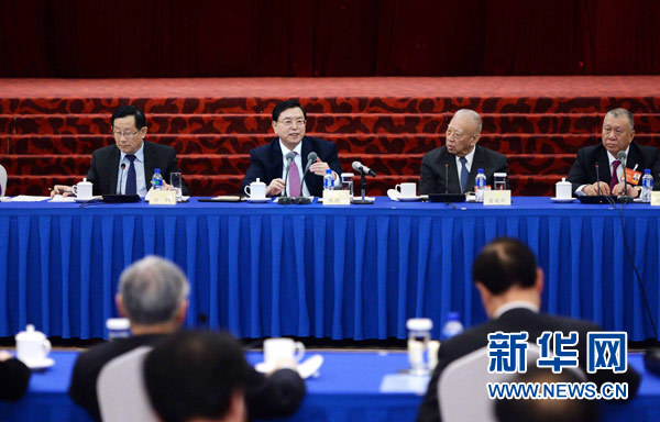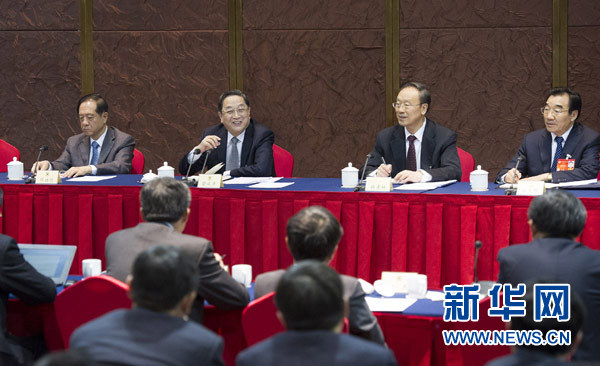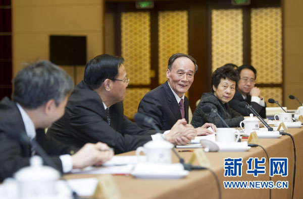 3月4日,中共中央政治局常委、中央纪委书记王岐山看望出席全国政协十二届二次会议的民盟、民进界委员并参加讨论。 新华社记者 谢环驰摄