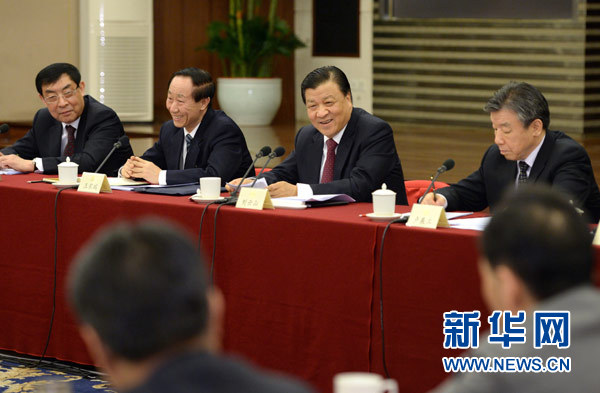 3月4日,中共中央政治局常委、中央书记处书记刘云山看望出席全国政协十二届二次会议的社会科学、新闻出版界委员并参加讨论。新华社记者 马占成摄