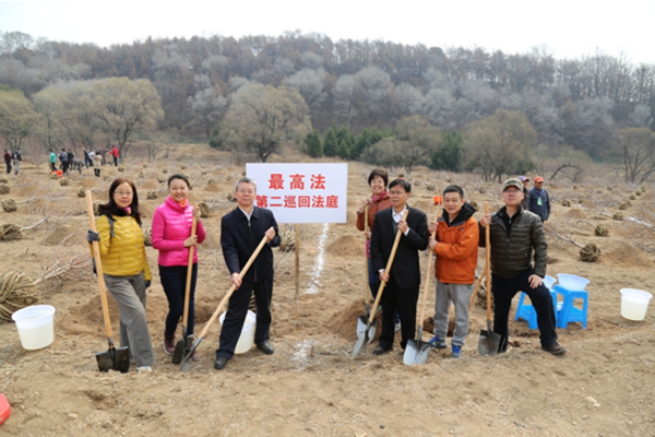 2015年4月9日上午,第二巡回法庭党组副书记、副庭长郑学林、廉政监督员曾广东及法庭部分干警参加沈阳市举办的“开展绿化提升行动 打造生态宜居之都”义务植树活动。
