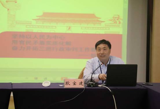 耿宝建主审以十九大报告中坚持以人民为中心的思想定位为主要切入点,结合工作实际,分享了他对在人民司法主要矛盾发生变化的新时代如何做好行政审判工作的心得与体会。他指出,第一是坚持以人民为中心,深刻领会习近平新时代中国特色社会主义思想人民性特质。作为法院的干警,要紧紧围绕“努力让人民群众在每一个司法案件中感受到公平正义”这一目标,始终坚持以人民为中心、坚持全心全意为人民服务,主动认识和服务新时代的人民司法工作。第二是坚持以人民为中心,深刻把握新时代行政审判工作面临的新的主要矛盾。当前,行政审判工作面临的主要矛盾,已经不再是传统的立案难审理难执行难,而是有了新的变化。这种变化表现在以下方面:从国家治理层面,表现为国家治理体系和治理能力有待加强与行政审判职能延伸不够之间的矛盾;从依法治国层面,表现为全面依法治国任务依然繁重与行政审判司法监督不到位之间的矛盾;从纠纷实质解决层面,表现为新时期社会矛盾和问题交织叠加与行政审判实质化解纠纷能力不足之间的矛盾。第三是坚持以人民为中心,及时回应人民群众渴望官民矛盾实质化解的新的司法需求。在目前行政审判容易受强大行政权、标准不一的法理情因素影响的背后,暴露出的是实质化解纠纷能力不够、人民性坚持不好的问题,对于不科学、不正确的政绩观并未完全摒弃,坐堂问案、就案办案、办数字案倾向仍然存在,从而忽视了对原告实体权益保护。保护好人民群众的实体权益,及时定分止争,推进官民矛盾的实质化解,已经成为新时代的新的司法需求,应当成为我们的工作目标。第四是坚持以人民为中心,要真正蹲下身去,用官民矛盾实质化解,赢取党委政府和人民群众信任。一是要始终坚持权为民所用、情为民所系、利为民所谋,要保有“衙斋卧听萧萧竹,疑是民间疾苦声”的情怀,要牢固树立人民意识、问题意识、换位思考意识、铁案意识和最高法院意识;二是要积极指导巡回区法院转变理念,重视源头治理,从基层改起;三是要有“功成不必在我,但成功必须有我”的胸襟,一茬接着一茬干,用一个个裁判去改正、引导、推动巡回区审判工作,通过一个个官民矛盾的实质化解,来践行党的十九大报告精神,开拓出三巡行政审判工作新境界。