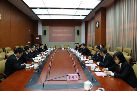 此外,为进一步加强与虹口法院的互动交流、经验互鉴,促进联学共建,切实提高三巡党建工作水平。我庭干警与虹口法院干警共同开展了党建工作座谈。座谈会上,虹口法院党组成员、副院长、机关党委书记沈立围绕“落实‘一岗双责’,促进法院工作上水平”这一目标,从树立目标导向、抓好重点环节、讲究工作方法、注重教育培训、强化履职考核、坚持数年不懈等六个方面详细介绍了虹口法院党建工作开展情况。马永欣也向虹口法院干警具体介绍了三巡“主审法官讲党课”等系列党建活动。同时,双方就如何妥善解决法院党建工作与审判业务“两张皮”的问题进行了深入交流。最后,马永欣对虹口法院就此次党建结对共建活动做出的精心安排表示感谢,对该院党组的工作理念和其诉服中心先进的工作模式以及信息化建设予以肯定。他表示,通过此次交流,不仅加深了三巡对基层法院党建工作的了解,收获了虹口法院在基础设施建设、司法理念、党建工作等方面的有益经验;同时,对于今后三巡开展各项工作具有启发意义,对于进一步做好三巡的党建工作更加充满信心。并诚挚邀请虹口法院的干警到三巡参观交流,进一步加深彼此沟通了解,促进共同进步。
