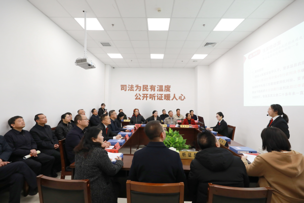 在雄壮嘹亮的国歌声中,鲜艳的五星红旗迎着朝阳冉冉升起,拉开了活动的序幕。在与会嘉宾的见证下,王中明副院长监誓,胡方副庭长领誓,全体干警庄严宣誓,以铮铮誓言表达了对宪法的尊崇和对公平正义的坚守。随后,代表委员、嘉宾共同参观了四巡听证室、庭史馆、党员活动中心,沉浸式体验法庭发展历程和工作成效。“申诉案件听证成了化解矛盾的‘终点站’,这种公开透明的方式真正让群众感受到司法温度。”在场代表委员们细细垂询、频频颔首,以恳切言辞和深度认同为这项司法实践投下了赞成票。