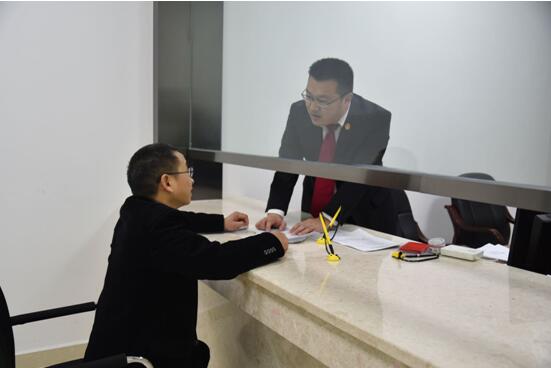 法官助理正在接待前来递交申诉材料的第一个当事人