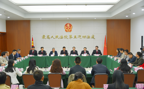10月21日, 最高人民法院第五巡回法庭举行“大法官开庭”暨公众开放日活动,主动邀请社会公众参观第五巡回法庭,零距离旁听、观摩最高人民法院副院长李少平大法官担任审判长公开开庭审理案件,参加第五巡回法庭召开的征求社会公众意见座谈会。