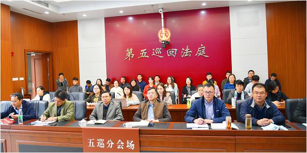 第五巡回法庭分党组成员、副庭长魏文超,分党组成员、专职党务干部(廉政监察员)何能高以及部分主审法官、法官助理、书记员和法律实习生现场听取讲座。第五巡回法庭综合办主任刘莹主持讲座。巡回区三级法院民商事审判法官及有关干警通过视频连线收看了讲座。(文:张东一 图:卢平)