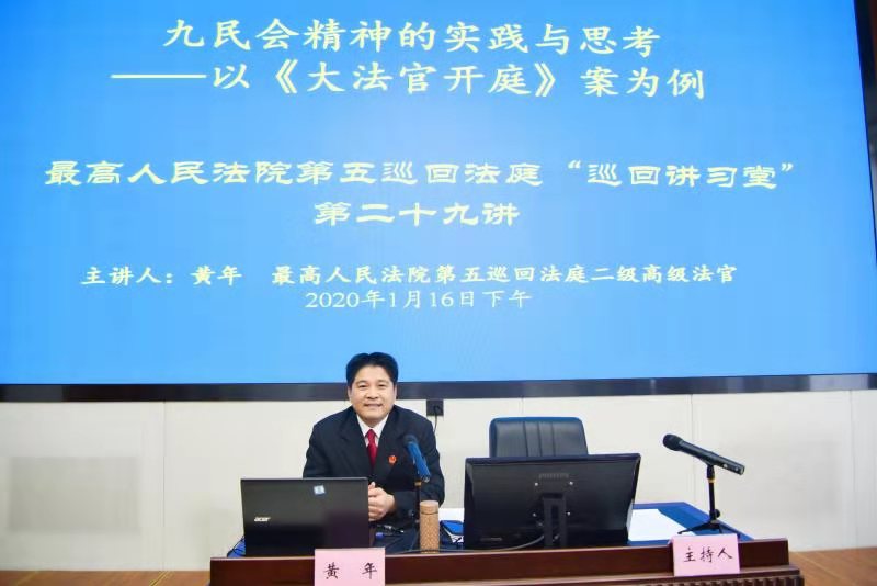 1月16日下午,最高人民法院第五巡回法庭迎来了新年第一课,主审法官黄年登上讲台,就“九民会精神的实践与思考——以《大法官开庭》案为例”给巡回区各级法院带来了一次审判经验分享。新年新气象,第五巡回法庭的“每月一讲”也更名为“巡回讲习堂”,这是更名后第一讲。
