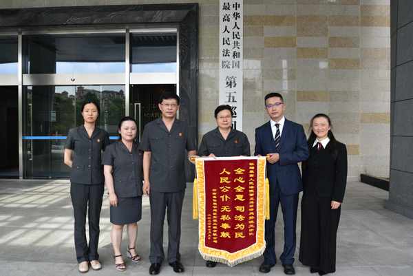 “真的太感谢您们了,如果没有这次的成功调解,我们公司只能再凑钱继续打官司,都不知道公司能不能撑到那个时候......” 日前,云南盛宇建筑公司王副总经理和诉讼代理人徐律师风尘仆仆来到最高人民法院第五巡回法庭,一见第五巡回法庭分党组成员、党务廉政专员何能高和主审法官孙晓光等人就激动地连声表达着自己的感谢之情。接着,他们代表公司庄重地送上洋洋洒洒数千言的感谢信和写着“全心全意,司法为民 ;人民公仆,无私奉献”的锦旗,真诚地表达他们对第五巡回法庭的感谢。