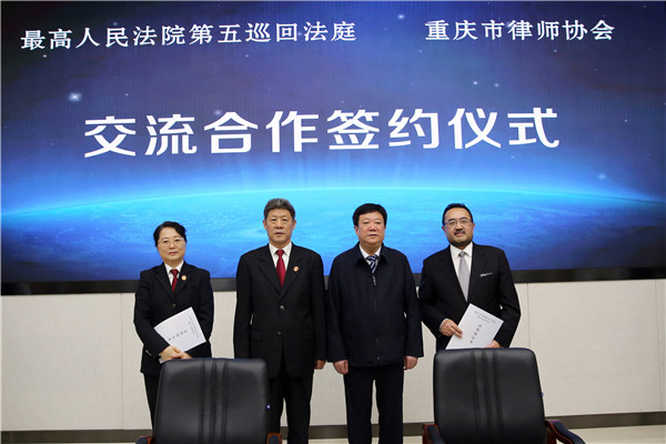 3月30日上午,最高人民法院第五巡回法庭与重庆大学、西南政法大学、重庆市律师协会签署交流合作协议,最高人民法院副院长、第五巡回法庭庭长李少平出席签约仪式。