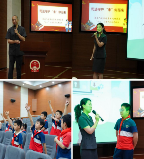少年儿童是推进强国建设、民族复兴伟业的生力军。为贯彻落实习近平总书记关于加强青少年法治教育、不断提升全体公民法治意识和法治素养的指示精神,做深做实巡回区青少年法治宣传教育工作,将少年法庭巡回审判点的职责进一步落到实处,5月30日上午第五巡回法庭举办“六一”儿童节“司法守护、‘未’你而来”公众开放日活动。重庆两江新区星湖小学、博雅小学的65名师生代表受邀走进五巡,近距离感受法院工作,沉浸式体验司法审判。全国人大代表李秋、张健、陈友坤,重庆市法院代表,重庆市妇联代表等参加活动。