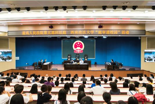2017年9月27日上午9时30分,最高人民法院第五巡回法庭在西南政法大学笃行楼500人模拟法庭公开开庭审理一起合同纠纷二审案件,第五巡回法庭副庭长刘竹梅亲自承办并担任审判长,与主审法官杨兴业、李延忱共同组成合议庭,法官助理和书记员分别为刘忠伟和罗映秋。西政师生共计520人旁听了庭审,反响热烈。