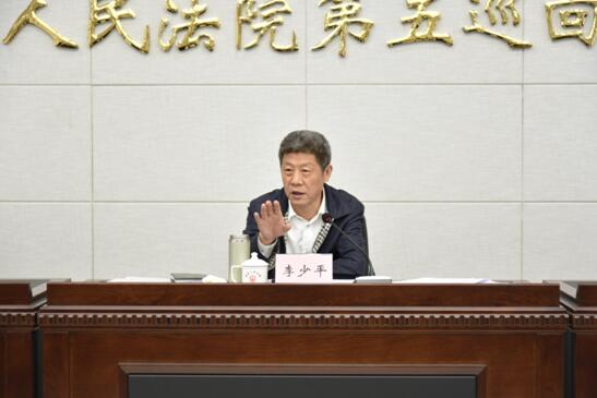 为充分发挥巡回法庭“以案指导”职能作用,进一步统一法律适用标准,切实提升巡回区案件审判质效,5月9日下午,最高人民法院第五巡回法庭召开巡回区审判工作座谈会。最高人民法院党组成员、副院长、五巡分党组书记、庭长李少平出席并讲话,分党组副书记、副庭长刘竹梅出席,五巡分党组成员、副庭长万永海主持会议。巡回区五省(区、市)高级人民法院有关负责同志及相关业务庭负责人参加。五巡全体主审法官、综合办公室、诉讼服务中心负责人参会。