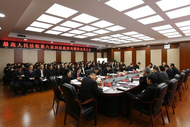 1月21日上午,第六巡回法庭召开转岗履职动员大会,学习贯彻中央政法工作会议及全国高级法院院长会议精神,部署谋划2019年各项工作。六巡分党组副书记、副庭长何莉主持会议并做动员讲话。
