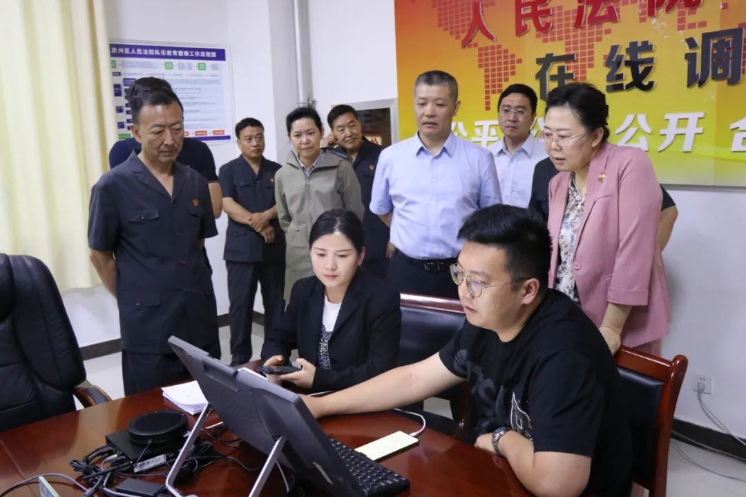 在原州区法院,调研组一行重点参观了诉讼服务中心、诉调对接中心,通过查看资料、听取汇报、与法官、调解员面对面交流等形式,了解原州区法院开展诉源治理工作情况,听取“法院+行业”“专业+群众”矛盾纠纷多元化解平台拓展、“审前和解+诉中引导+诉后沟通”工作模式、“执前和解中心”创建等经验做法介绍,对原州区法院通过“五融五聚”打造“法润原州”诉源治理品牌做法给予肯定。在诉前视频调解室,调研组一行还观看了“易判智能调解辅助系统”操作演示,对该系统的运行情况及实现诉前调解集约化管理情况与调解员进行了交流。