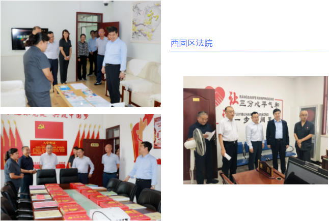 当天下午,调研组一行先后前往兰州市西固区法院陈官营法庭、福利路法庭进行实地调研。在陈官营法庭,调研组实地察看法庭诉前调解窗口、商事审判庭并听取了陈官营法庭多元化解矛盾纠纷、诉源治理方面的工作介绍;福利路法庭是西固区法院集中审理家事案件的部门,涉未成年人的刑事、民事案件多,调研组重点察看了家事审判室、情感观察室、心理咨询室、党建室并与干警就日常办案、工作学习等情况进行交流交谈。