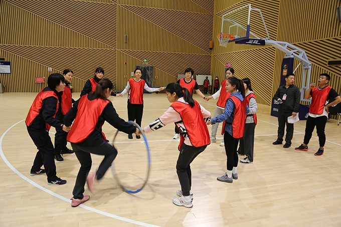 一圈到底则来到了女队员们的主场,队员们手拉手围成一圈,呼啦圈自如穿梭在队伍之中。参赛队员们前后衔接配合默契,虽然来自不同的部门、团队,但这一刻大家凝聚在一起,为共同目标而奋力拼搏着。