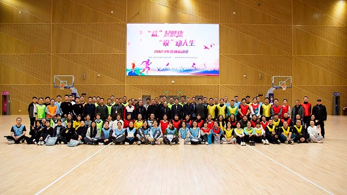简短的开幕式后,2023年趣味运动会在整齐划一的健身操中正式拉开序幕,四名运动员带领大家进行赛前热身,全体运动员跳起了健身操《本草纲目》,动作一拍一合,连贯流畅,激情洋溢,活力四射。健身操不仅让全体参赛队员进行了赛前热身,更激发了队员们的比赛热情。