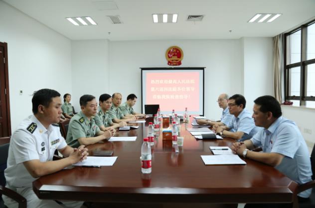 7月28日,在中国人民解放军建军90周年到来之际,最高人民法院第六巡回法庭分党组副书记、副庭长张明一行来到中国人民解放军中部战区西安军事法院走访慰问,代表最高人民法院党组成员、副院长,第六巡回法庭分党组书记、庭长张述元和六巡全体干警对西安军事法院全体同志致以节日的问候,并同陕西省军区政治工作局主任史建国、中部战区军事法院副院长卢辉等领导进行座谈。西安军事法院院长贾胜军主持座谈会。
