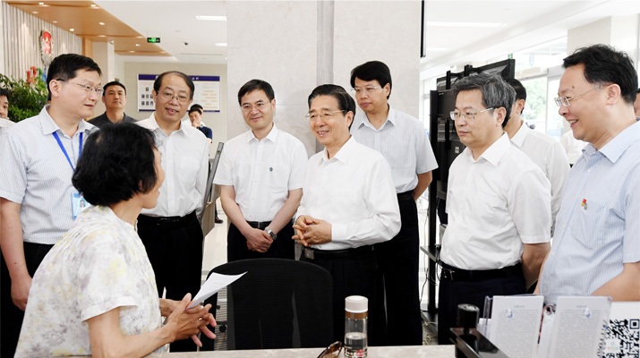 6月6日至8日,中共中央政治局委员、中央政法委书记郭声琨在江苏调研。图为郭声琨来到镇江市公共法律服务中心向办事群众了解法律服务情况。郝帆 摄