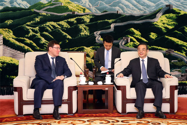 图为周强会见乌克兰总检察长卢岑科