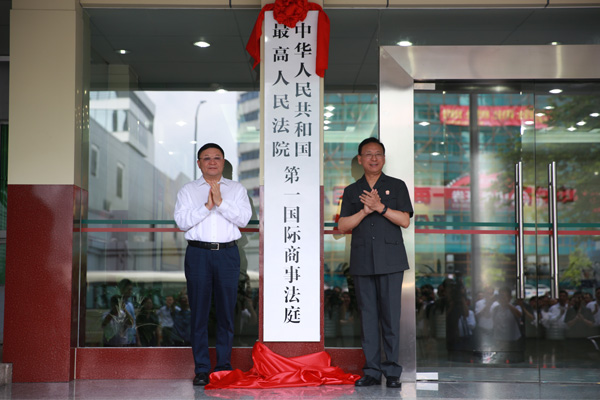 6月29日上午和下午,最高人民法院第一国际商事法庭、第二国际商事法庭分别在深圳市和西安市揭牌,开始正式办公。最高人民法院党组副书记、副院长江必新受最高人民法院党组书记、院长周强委托出席揭牌活动并讲话,分别与广东省委常委、深圳市委书记王伟中,陕西省委常委、政法委书记杜航伟为法庭揭牌。最高人民法院审判委员会专职委员、第一巡回法庭庭长裴显鼎,最高人民法院副院长、第六巡回法庭庭长张述元先后主持揭牌活动并介绍法庭组建情况。