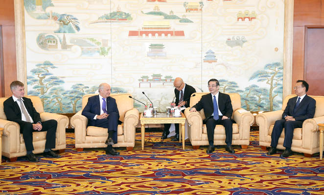 图为周强会见法比尤斯和索尔海姆。孙若丰 摄