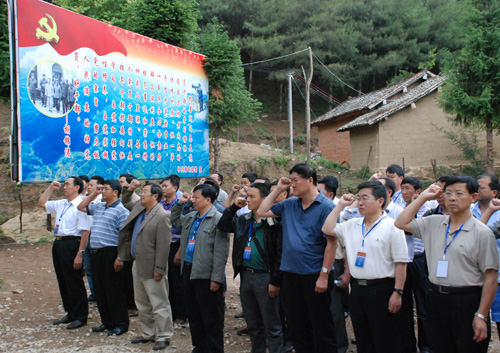 为了让全省三级法院党建工作者直观地学习体会杨善洲同志的模范事迹和崇高精神。5月26日,在云南省保山市隆阳区参加全省法院系统党建工作研讨会的100余名党建工作者前往施甸县善洲林场进行参观学习。在善洲林场,全体同志怀着缅怀和敬仰的心情向杨善洲同志墓敬献了花篮和鲜花,并在杨善洲同志的墓前重温入党誓词。(供稿单位:云南省保山市中级人民法院 作者:王瑶)