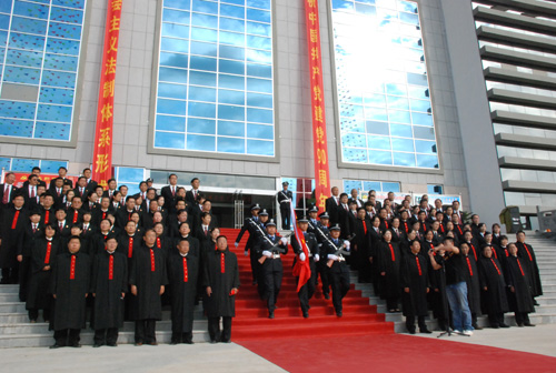 为隆重庆祝建党90周年华诞,表达全体法官、干警热爱党、热爱祖国的强烈心声。6月30日,地处祖国西南边陲的云南省保山市中级人民法院举行升旗、向党旗宣誓仪式,116名法官、干警放声高唱《没有共产党就没有新中国》,边疆法官们的嘹亮歌声响彻滇西兰城保山。(供稿单位:云南省保山市中级人民法院 作者:王瑶)