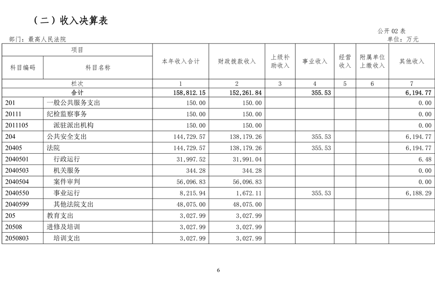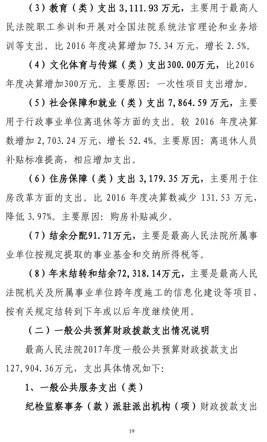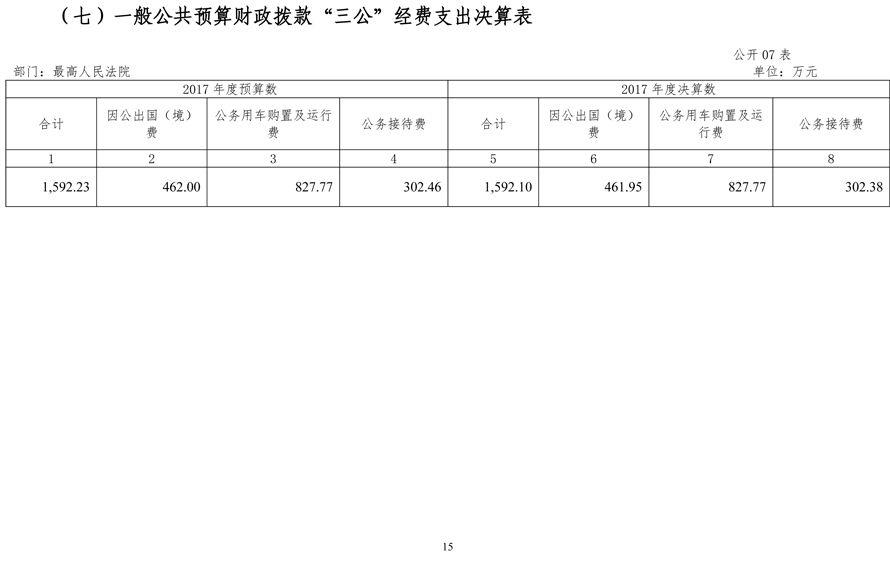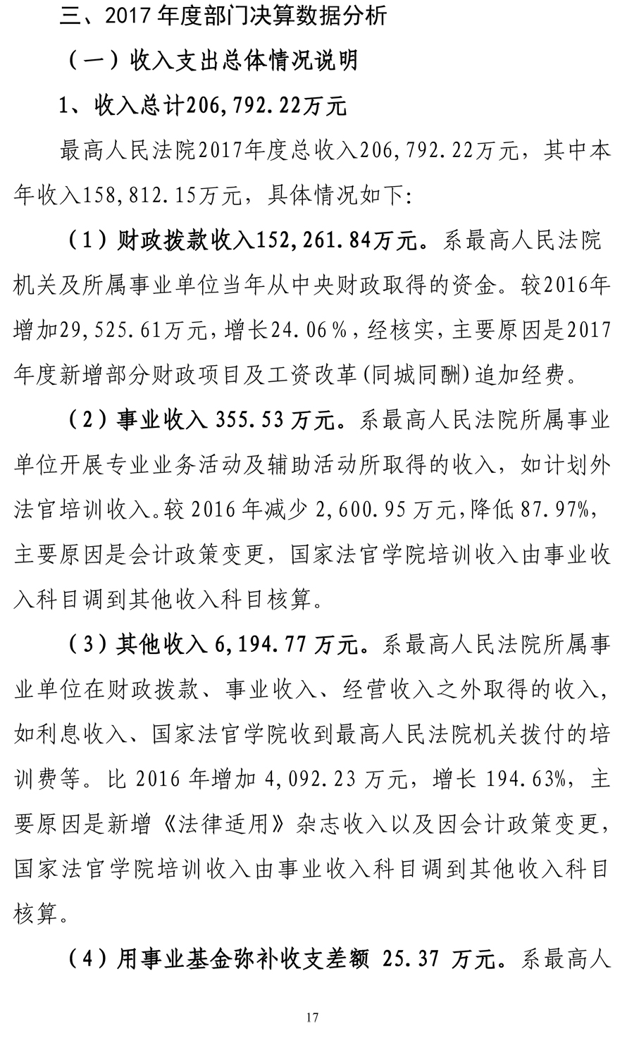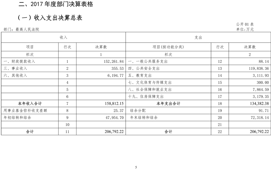 最高人民法院2017年度部门决算
