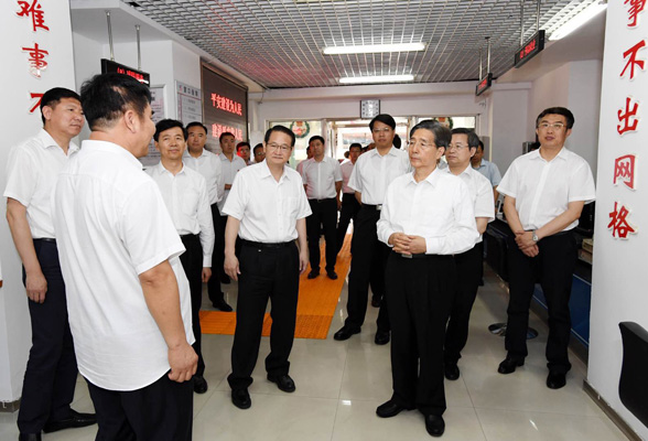 7月21日至22日,中共中央政治局委员、中央政法委书记郭声琨在辽宁调研。图为郭声琨来到沈阳市沈河区五里河街道综治中心调研。 摄影 郝帆