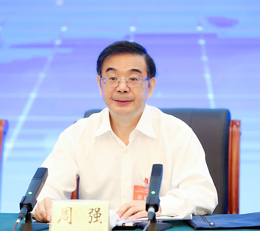 周强在最高人民法院贯彻落实全面深化司法体制改革推进会精神专题视频会议上讲话。孙若丰 摄