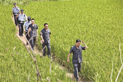 图①:执行干警行走在乡间田埂上。