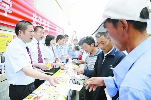 6月25日,新疆生产建设兵团芳草湖垦区人民法院组织干警开展打击毒品犯罪宣传活动,通过在人员集中的商贸城张贴宣传画、实物讲解、发放宣传单等多种方式,向群众宣传毒品的危害和贩卖毒品的法律后果。(崔建民 张伟森 金文彬 摄)